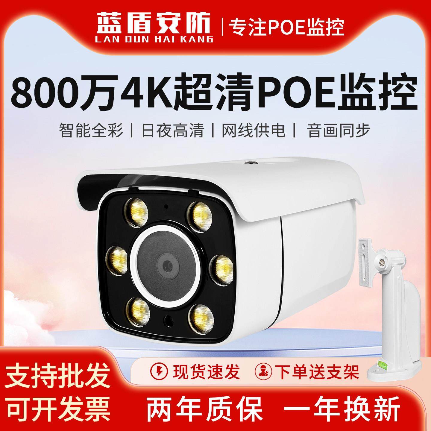 4K高清800万网络监控摄像头 夜视防水支援POE供电 兼容海康设备