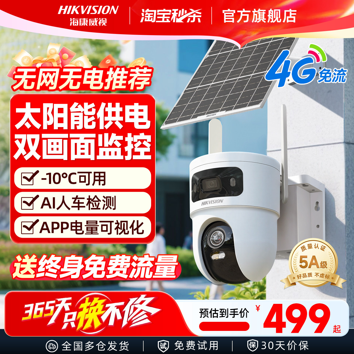 海康威视监控器手机远程4G摄像室外夜视360度全景摄影头免流量