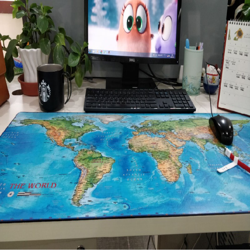 世界地形图蓝色海洋英文环保天然橡胶可擦写字超大桌垫餐垫鼠标垫