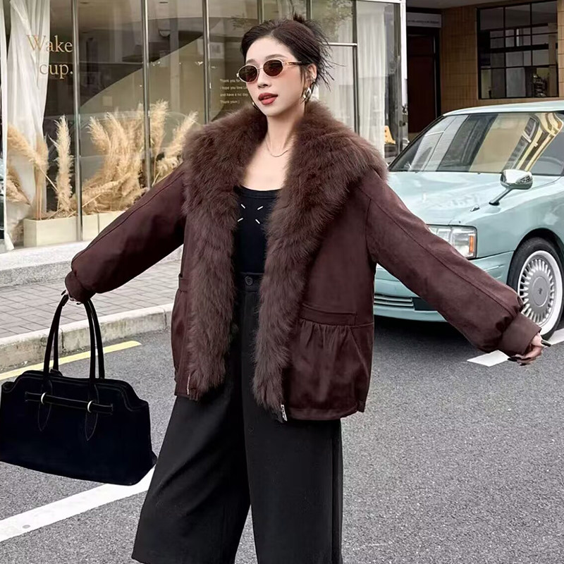 短款白鹅绒羽绒服女2025冬季新款高级洋气大毛领皮毛一体皮草外套
