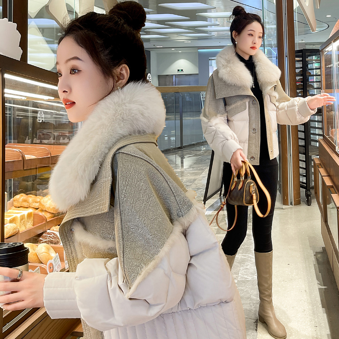 欧洲站欧货短款羊羔毛领白鹅绒羽绒服女宽松显瘦百搭保暖外套冬季