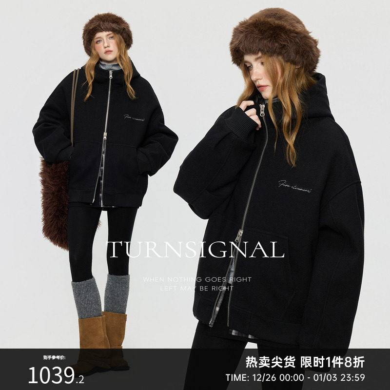 TurnSignal短款白鹅绒羽绒服女冬季2025新款宽松保暖连帽羽绒外套