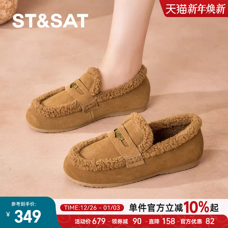AMR UU◆冬季加绒保暖毛毛鞋加绒乐福鞋圆头外穿毛绒豆豆鞋女新款