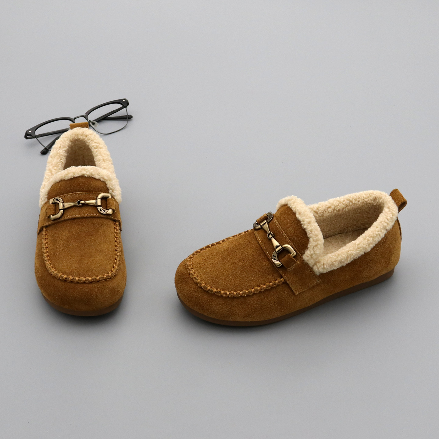 真皮加绒乐福鞋女2025秋冬新款厚底一脚蹬保暖休闲豆豆鞋女毛毛鞋