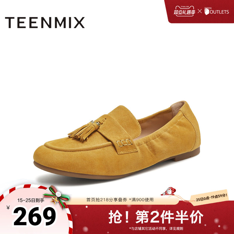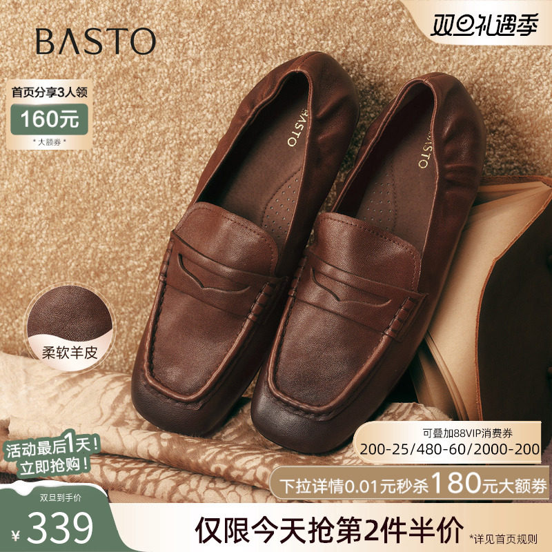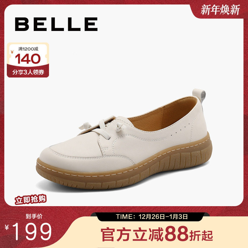 百丽女鞋子豆豆鞋女新款牛津乐福鞋小皮鞋子真皮休闲便鞋B7M1DCA4