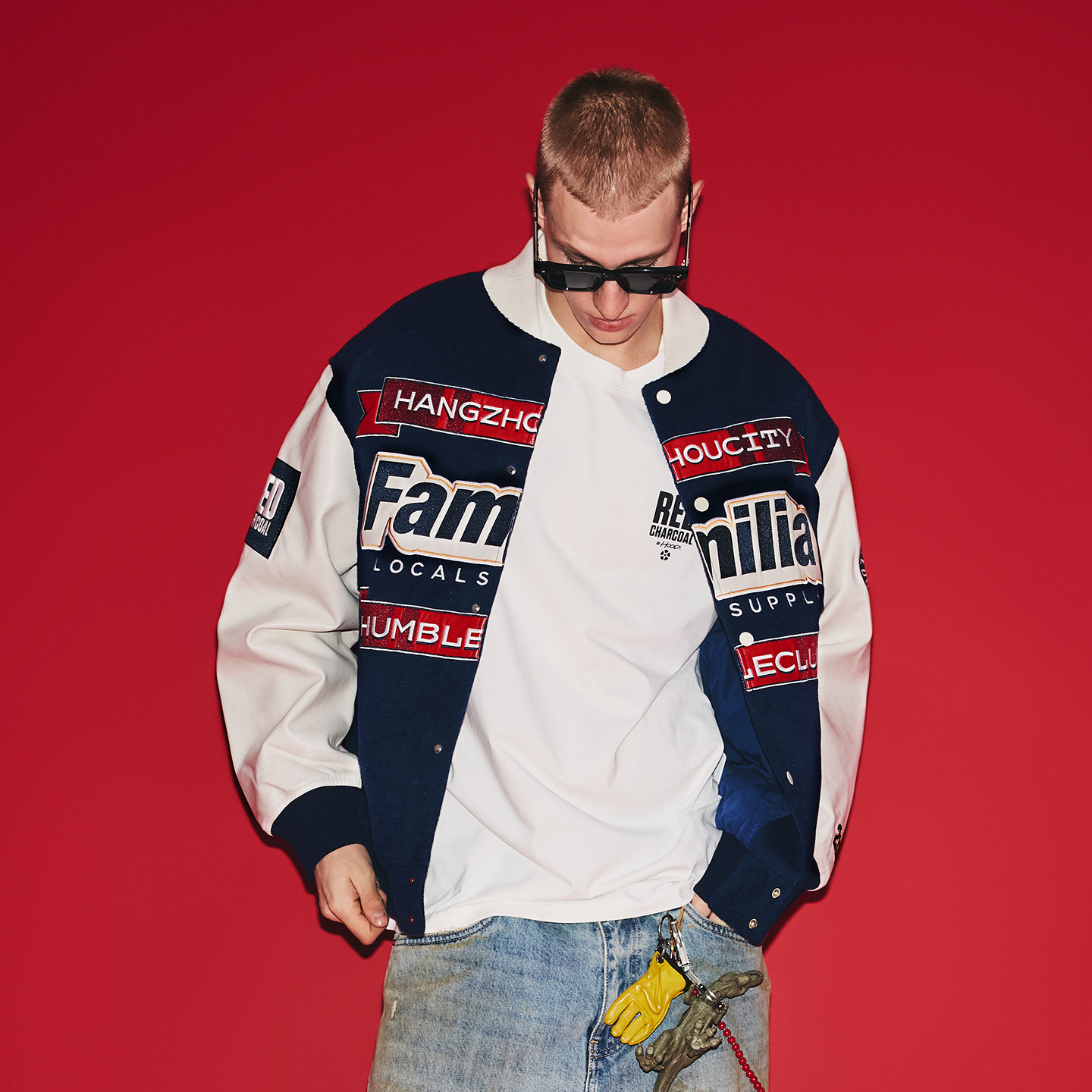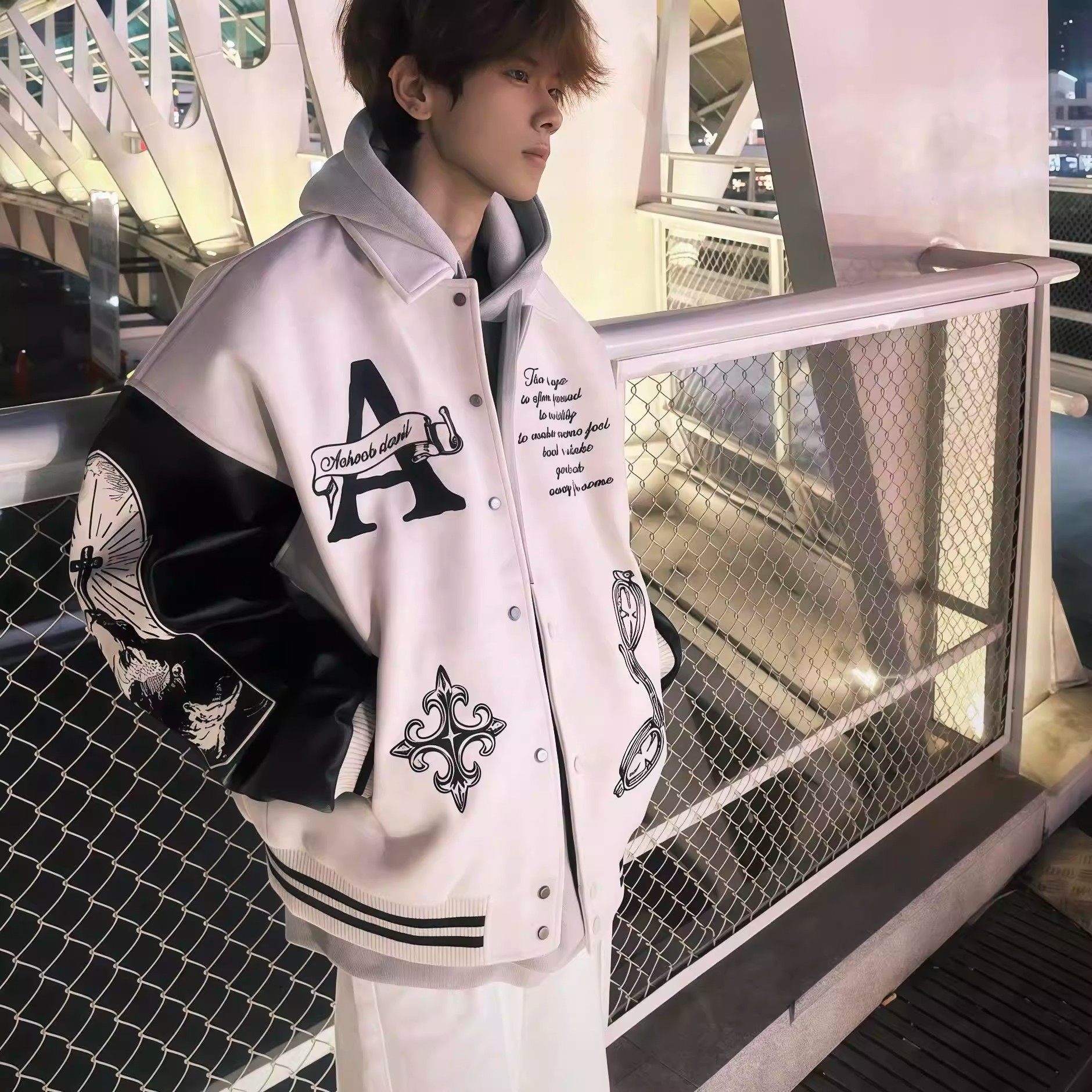 国潮高街风徽章刺绣拼接棒球服夹克男款秋冬潮牌痞帅休闲小众外套