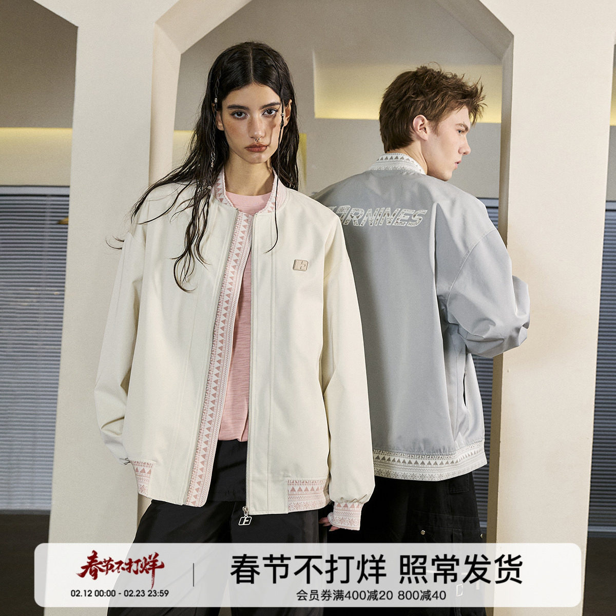 FORNINES民族风拼接贴布刺绣夹克外套男女潮牌情侣春季美式棒球服