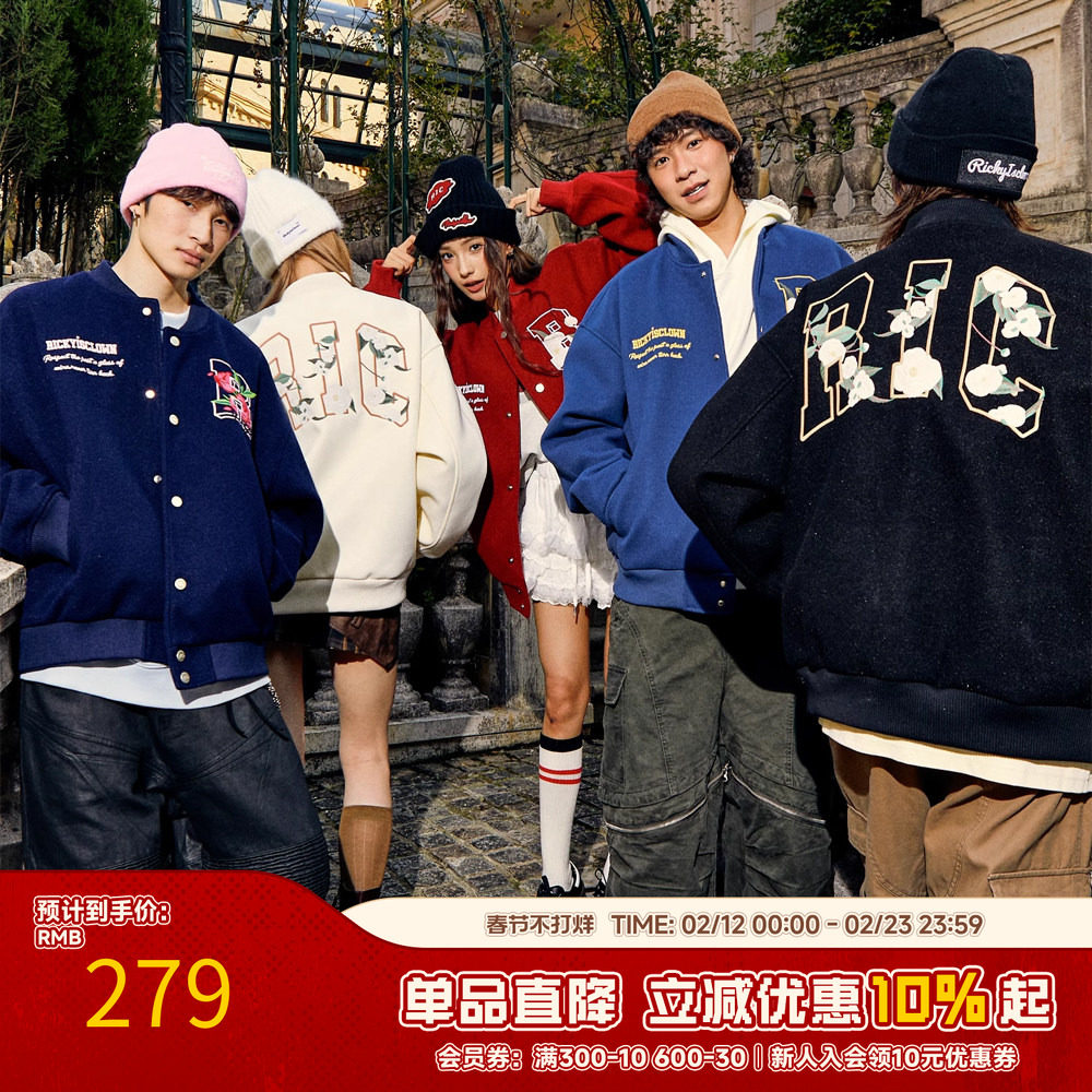 RIC 山茶花刺绣棒球服夹克男生新款秋季美式高街情侣装潮牌外套女