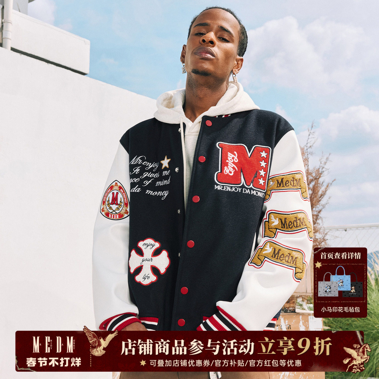 MEDM 星星绣花宽松立领棒球服男春秋季潮牌美式复古休闲百搭外套