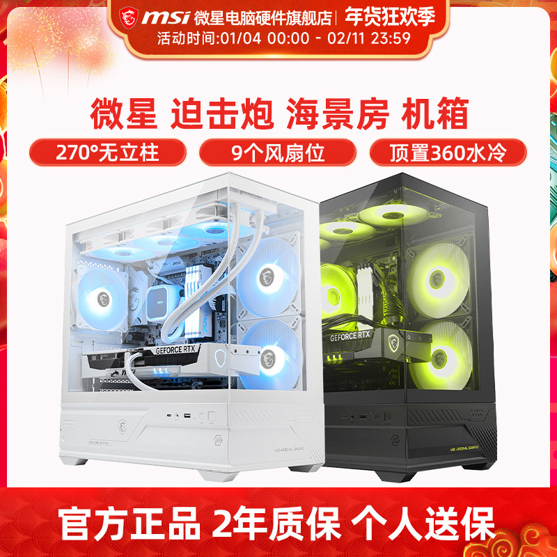 微星M110L 迫击炮海景房机箱M-ATX背插电竞游戏360水冷电脑主机箱