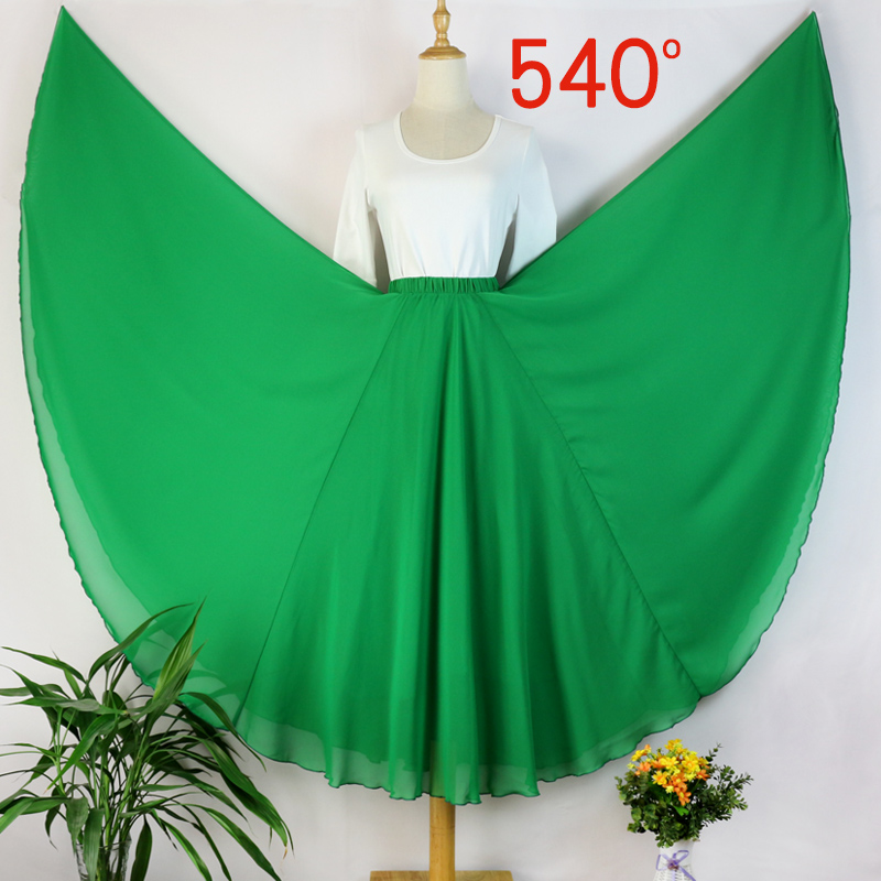 送腰带 双面穿雪纺半身裙540度超大摆跳舞长裙广场舞裙大红裙子
