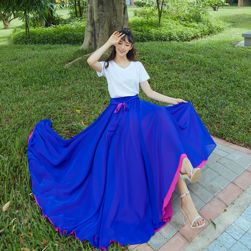 720度大摆雪纺半身裙女春夏秋大红新疆舞蹈裙演出广场舞沙滩长裙
