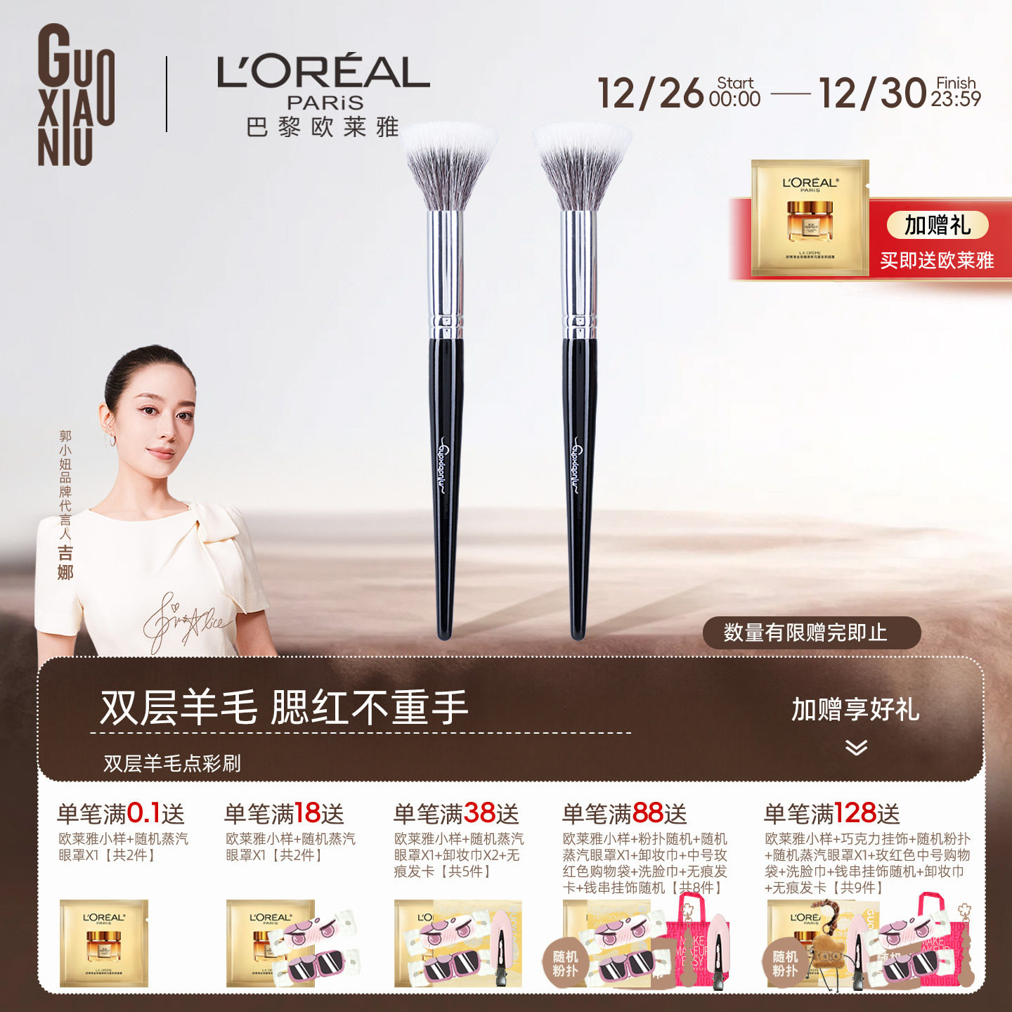 郭小妞瑰金坡面腮红刷点彩刷上妆清透自然脸部修容刷超柔软化妆刷