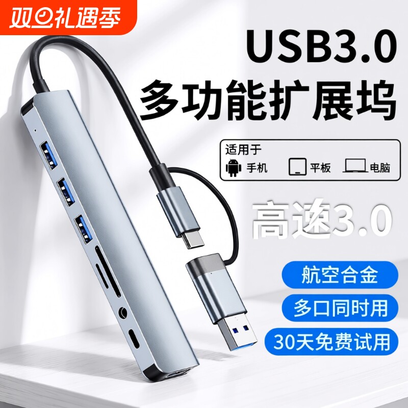 usb3.0扩展器多口拓展坞typec投屏转换usb分线器hub集线网线多接口转接头适用华为苹果笔记本电脑iPad11平板