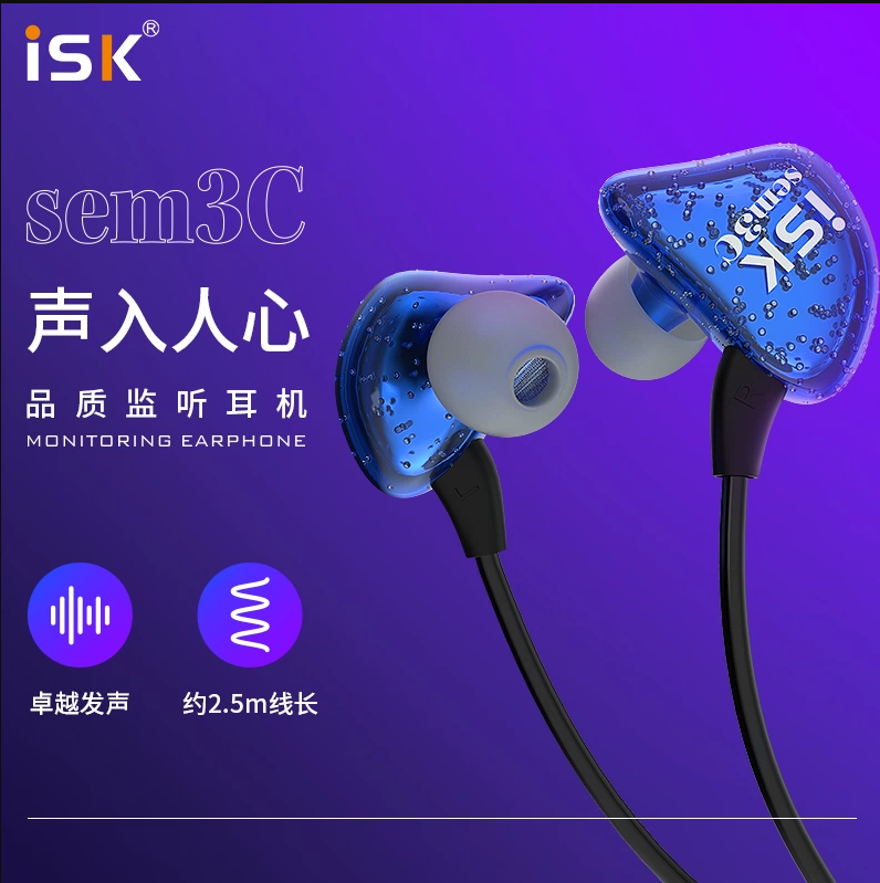 ISK SEM3C监听耳机 入耳式专业监听耳塞 录音专用 SEM3C