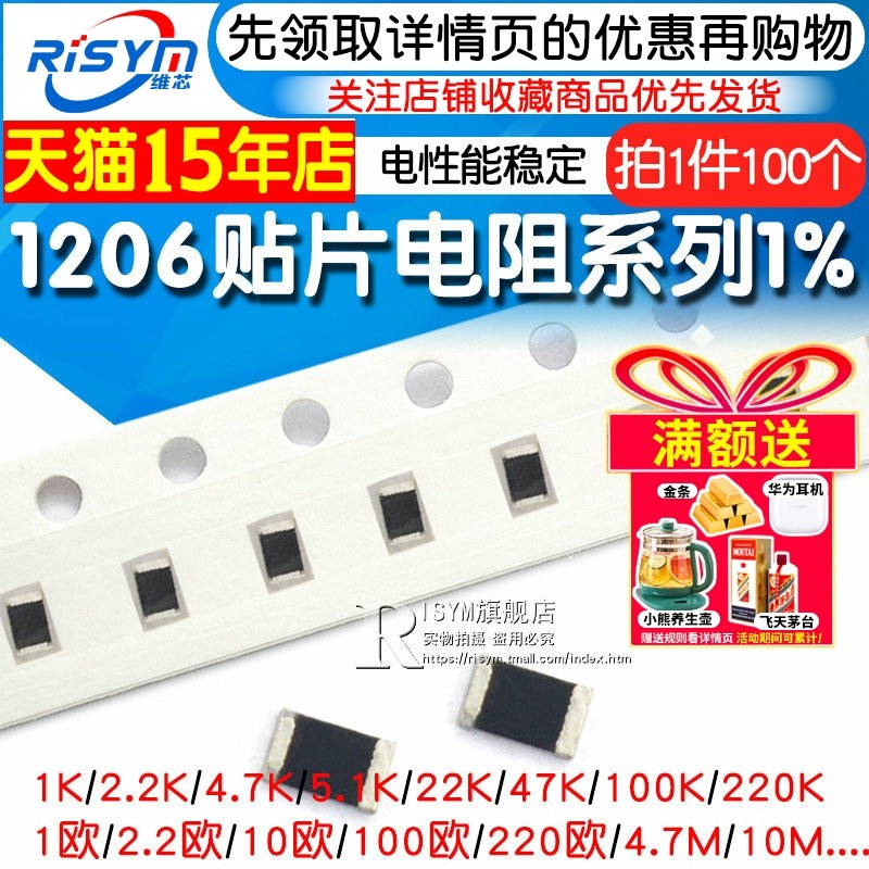 1206贴片电阻系列 精度1% 10R100R1K2.2K3.3K4.7K5.1K10K100K1MΩ