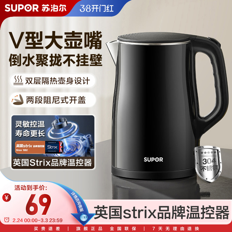 苏泊尔电热水壶家用大容量304不锈钢内胆双层饮水机开水热水壶