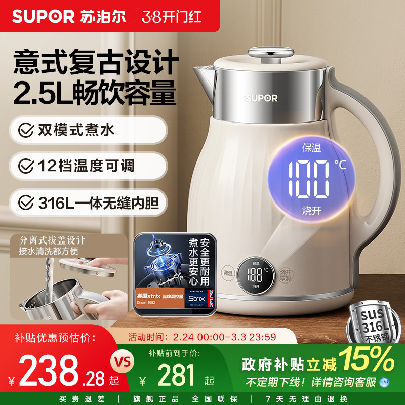 苏泊尔电热水壶家用保温一体恒温智能316L不锈钢电烧水壶2025新款