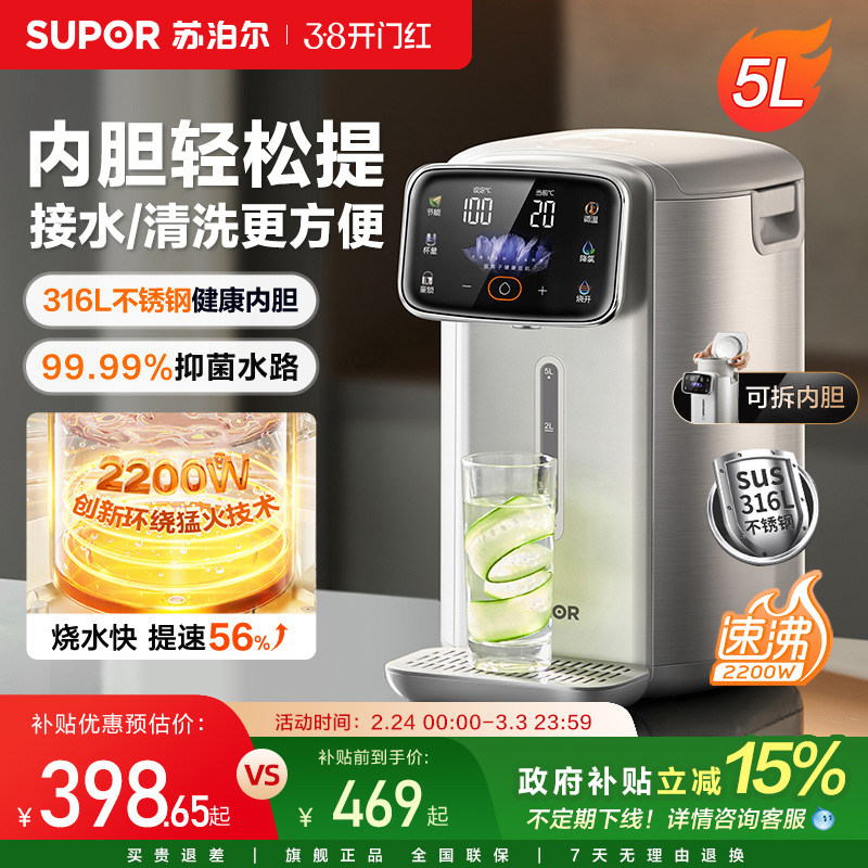 苏泊尔电热水瓶家用可拆洗有钛不锈钢内胆大容量抑菌智能电热水壶
