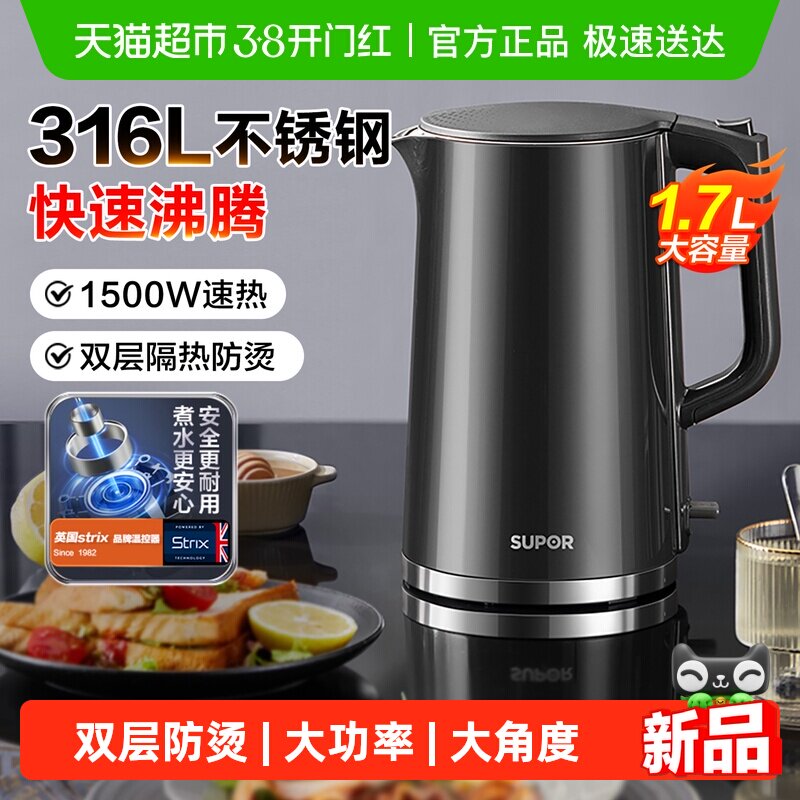 苏泊尔电热水壶家用316不锈钢大容量自动断电烧水壶旗舰款新品