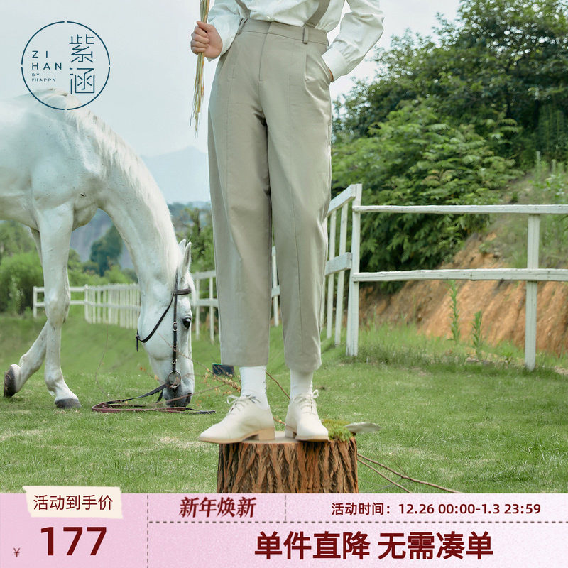 紫涵休闲减龄背带裤女春秋季冬新款简约舒适百搭长裤宽松直筒裤子