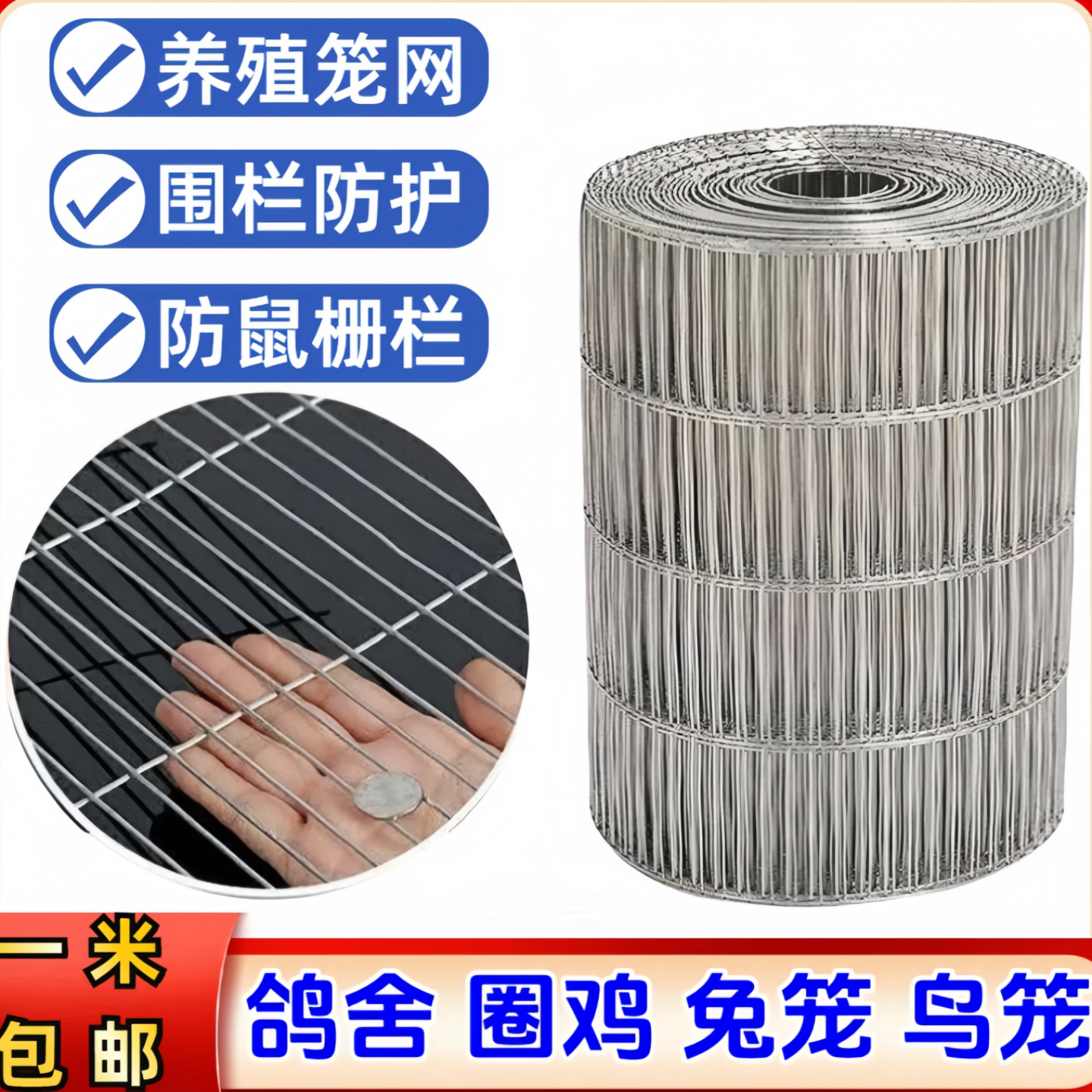 镀锌铁丝网鸟笼网片自制笼子材料钢丝网网格养殖网鸡笼兔笼鸽子笼