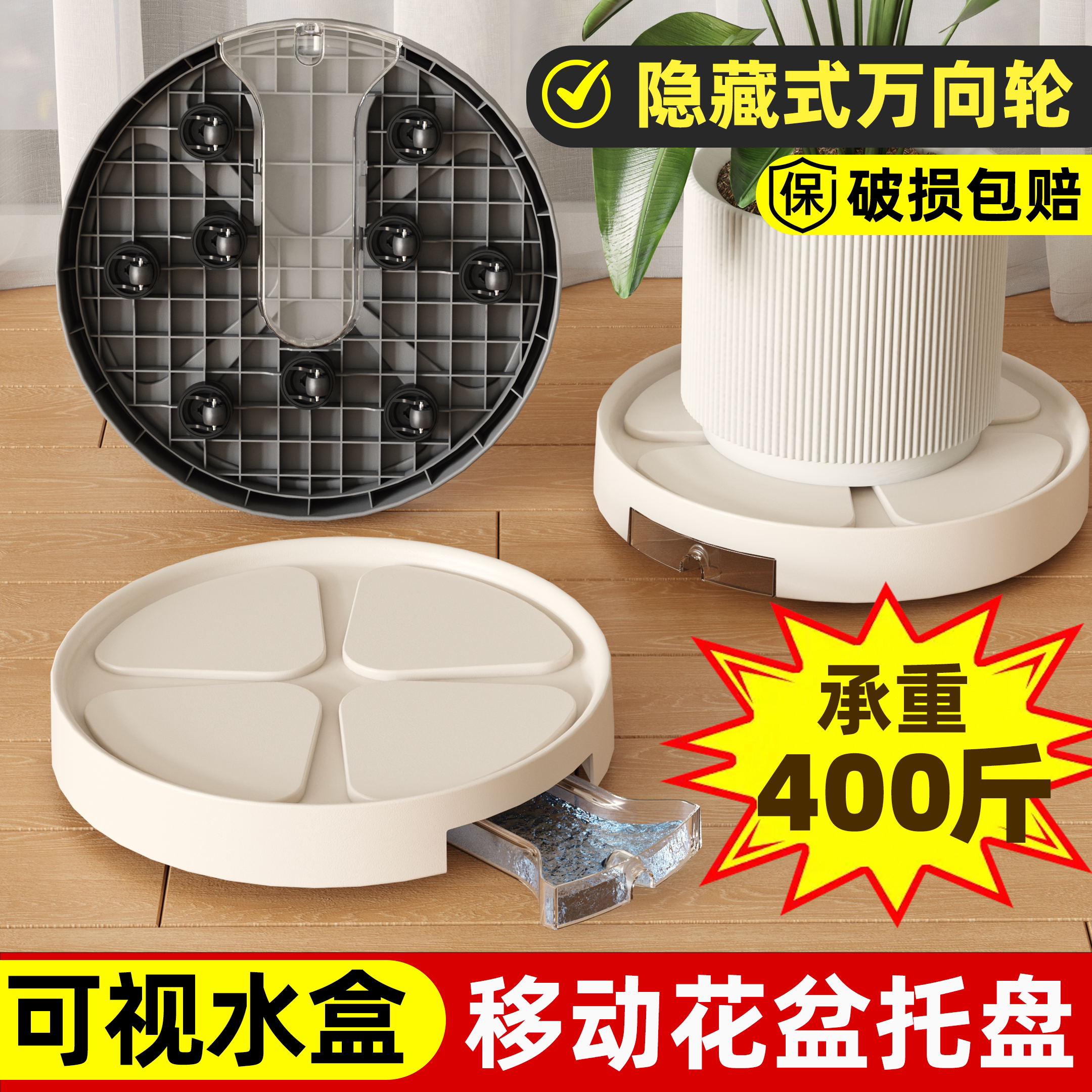 移动花盆托盘带轮底盘垫底座滚轮万向轮接水盘隐形轮盆栽塑料滑轮