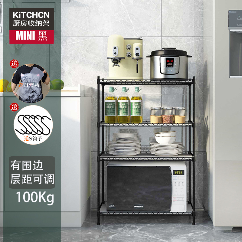 新款金属黑色夹缝置物架收纳架厨房微波炉烹饪用具角架层架储藏架