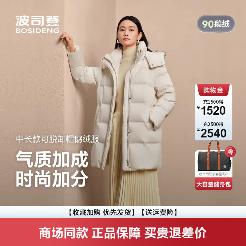波司登羽绒服女2025新款商务中长保暖拆卸帽休闲鹅绒服B250244172