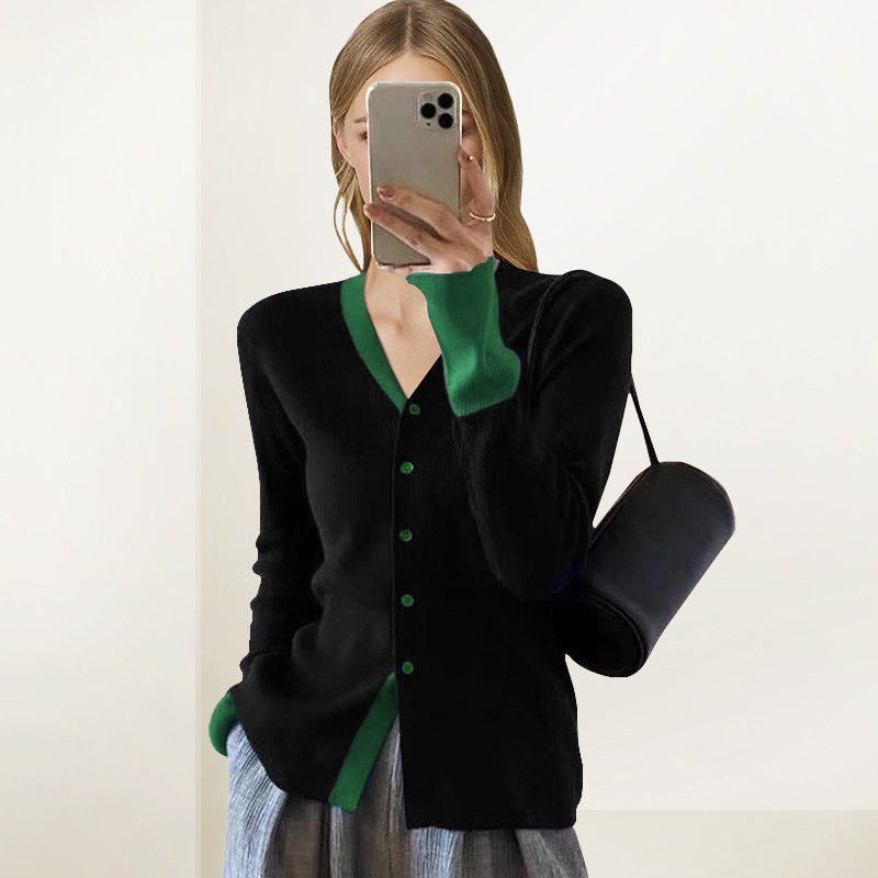 CCKOK2026早春韩系通勤穿搭薄款撞色假两件针织毛衣开衫女上衣