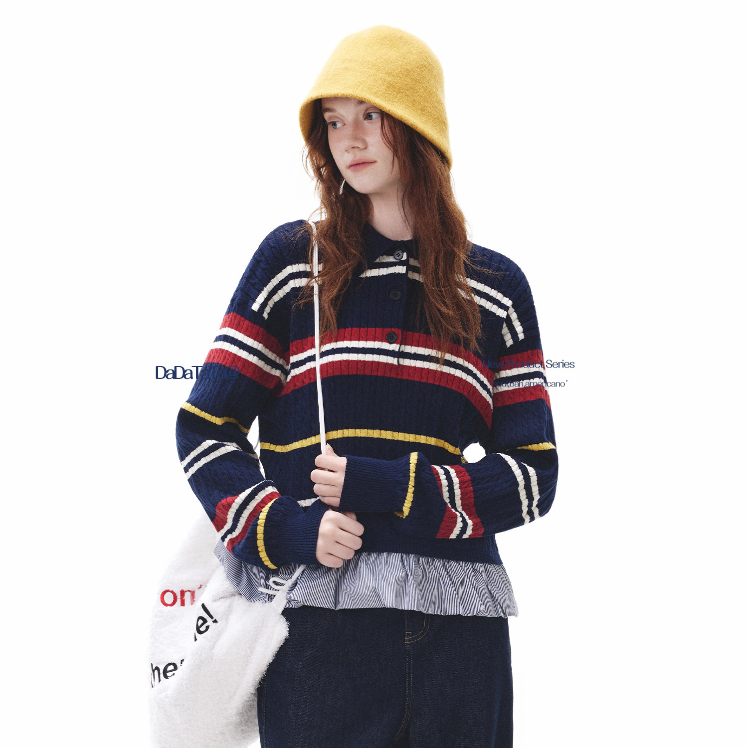 晶咕白标DADATATA【青藤假日】100金梳棉条纹撞色假两件针织毛衣