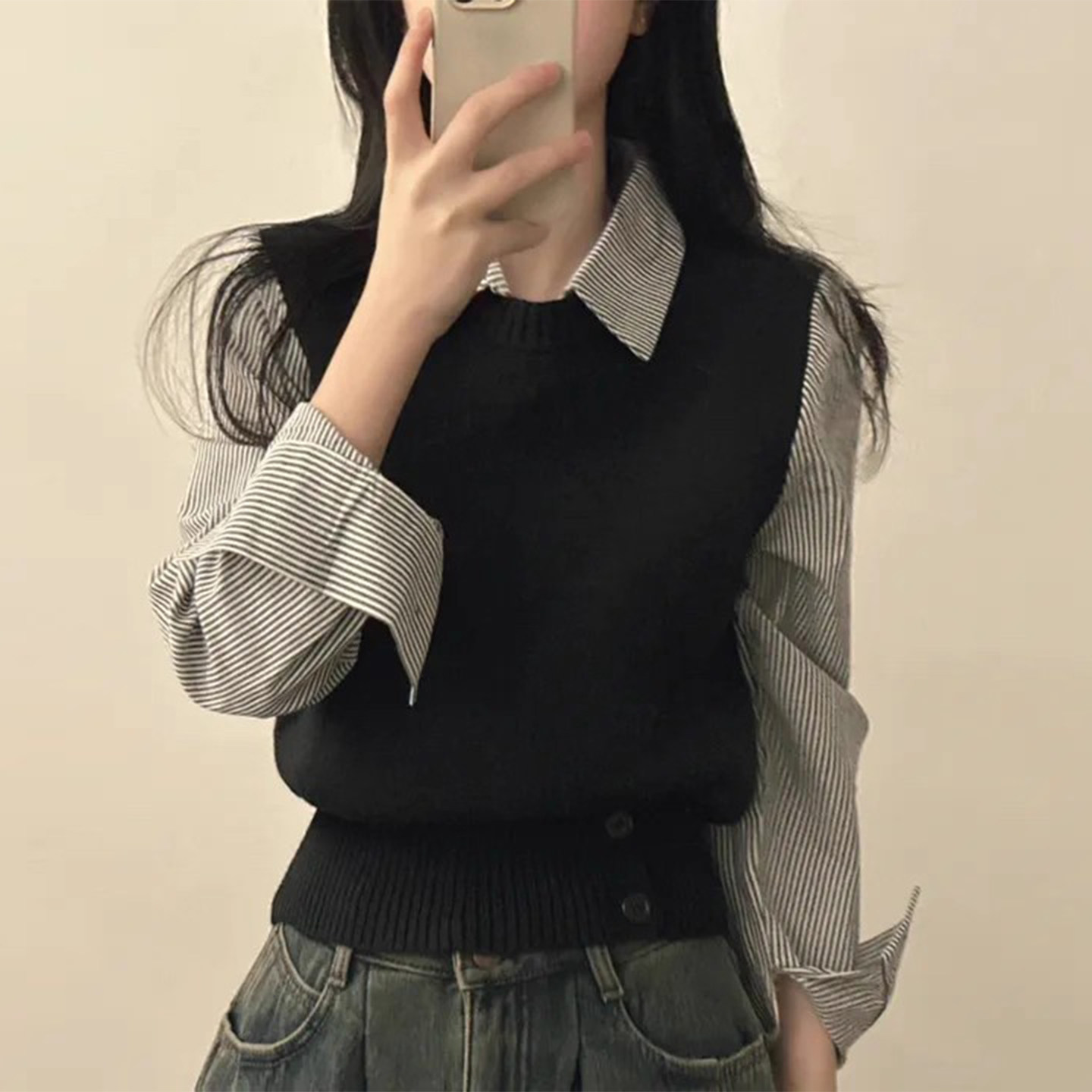 - 假两件长袖针织衫 女