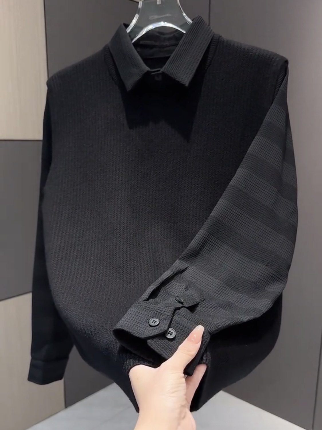啄木鸟假两件混纺毛衣男2025新款秋冬季衬衫领肌理感针织衫毛衫潮