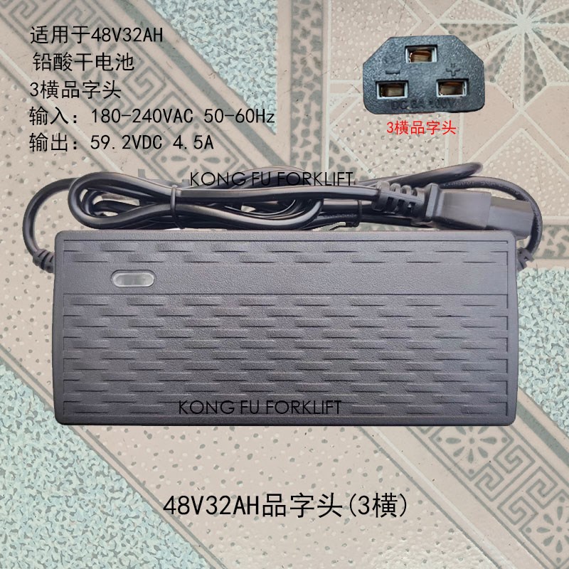 荣力铅酸干电池充电器48V32AH品字头三横插头三竖品插座T字品20AH
