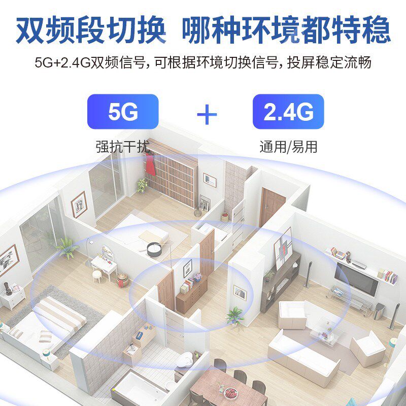 1080P无线同屏器投屏器手机连电视直播家用高清横竖屏5G双频通用