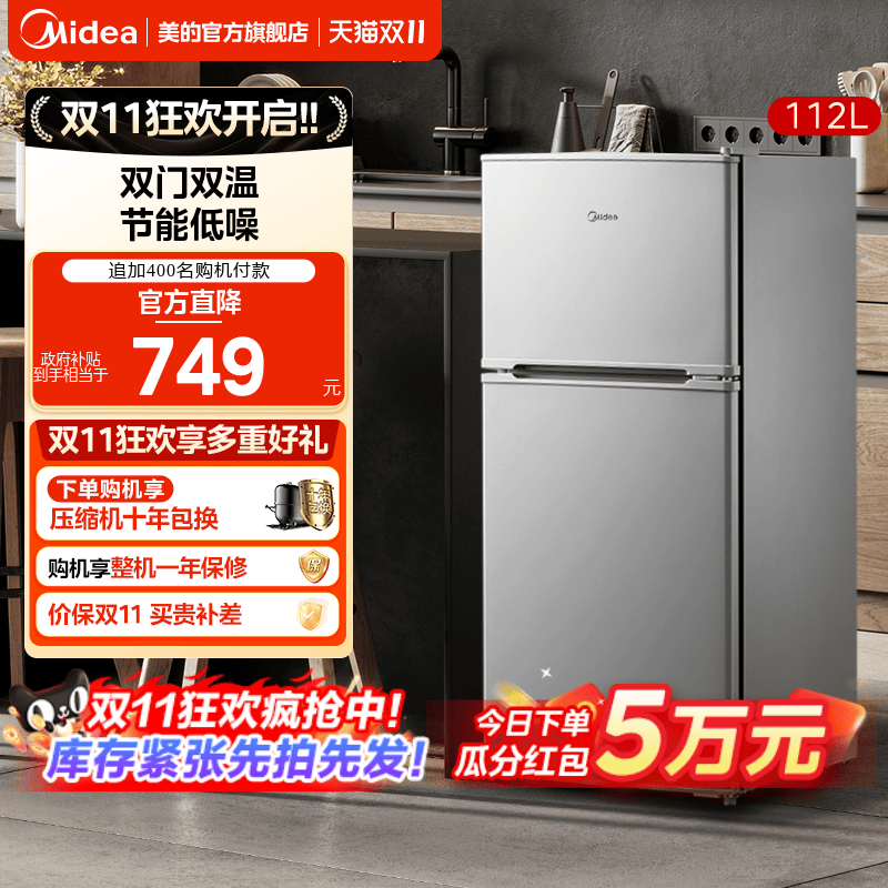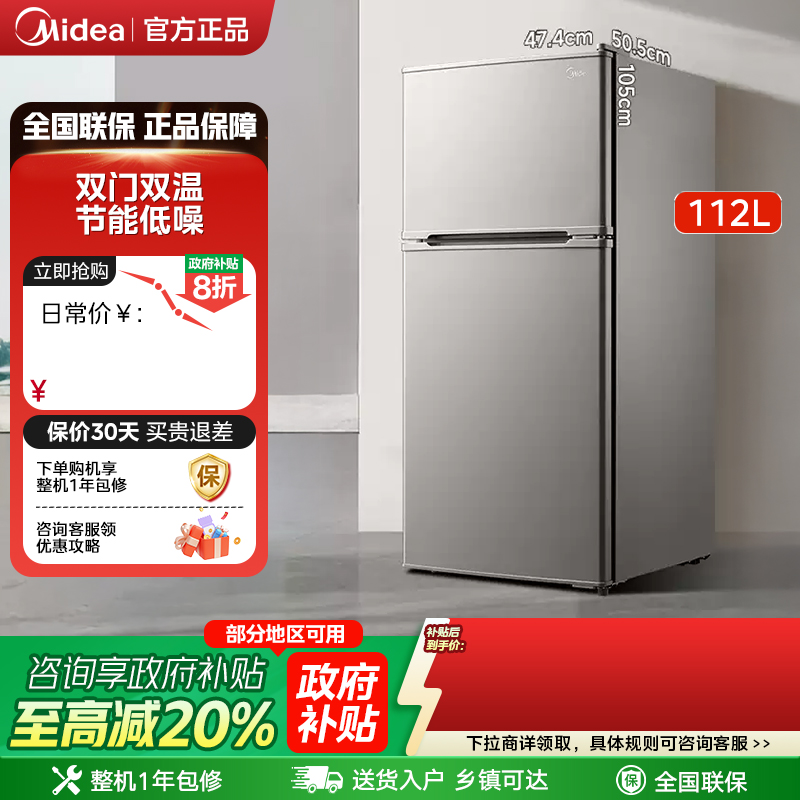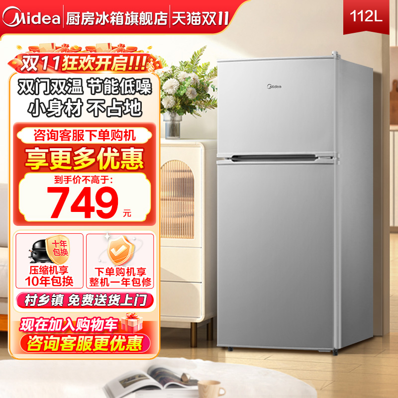 美的112L双门节能省电家用租房宿舍迷你冰箱办公室旗舰店正品
