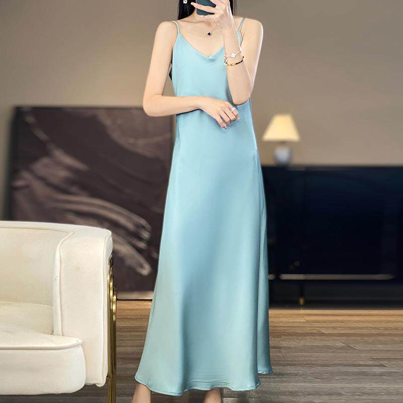 背心裙女夏季无袖宽松打底裙长裙2025夏季新款醋酸缎面吊带连衣裙