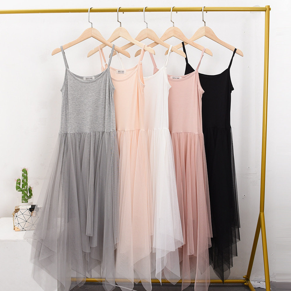 2019秋冬新款不规则网纱连衣裙内搭衬裙吊带背心打底裙长裙多色
