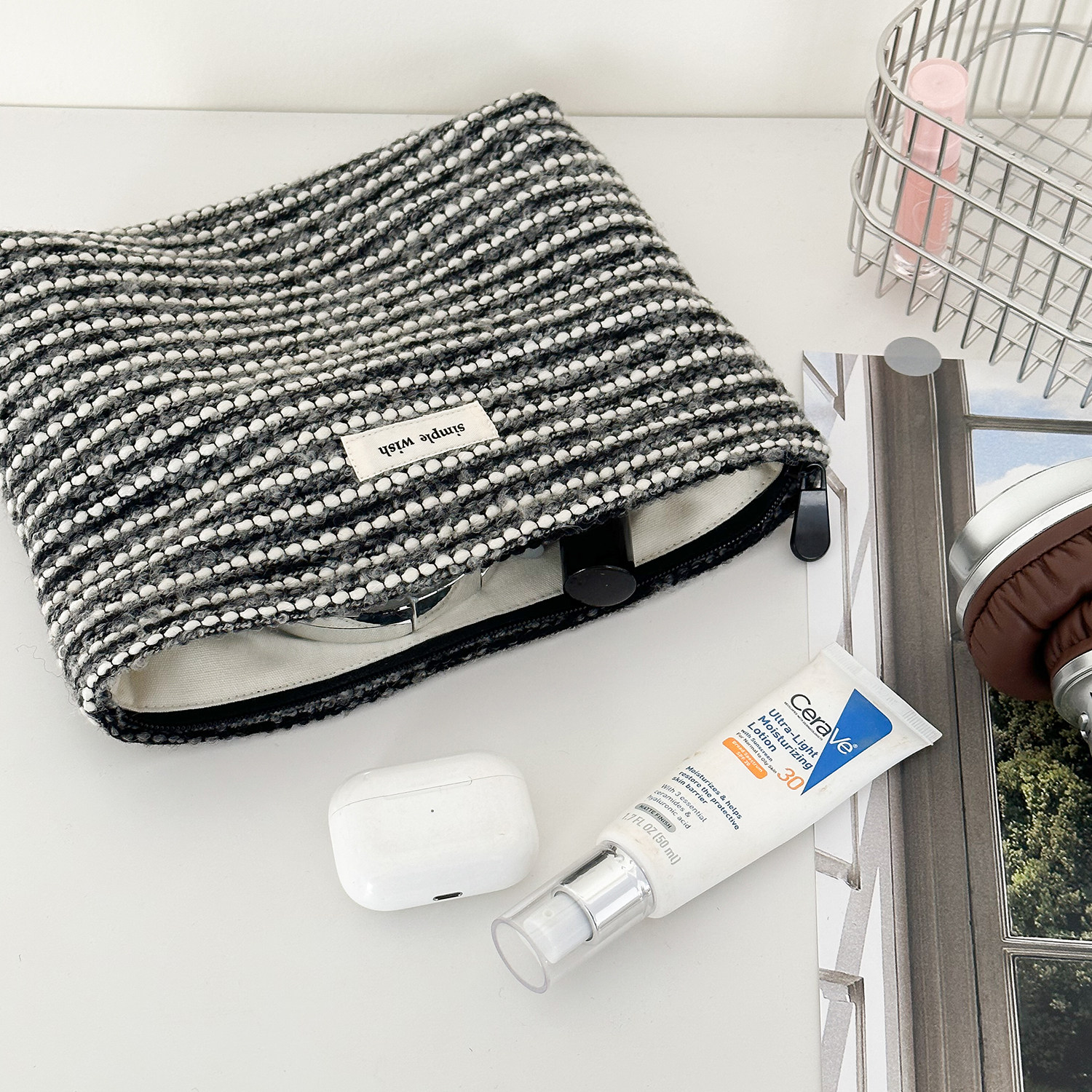 美摘彩色毛线编织化妆包高级感内胆包大容量便携出差洗漱包收纳袋