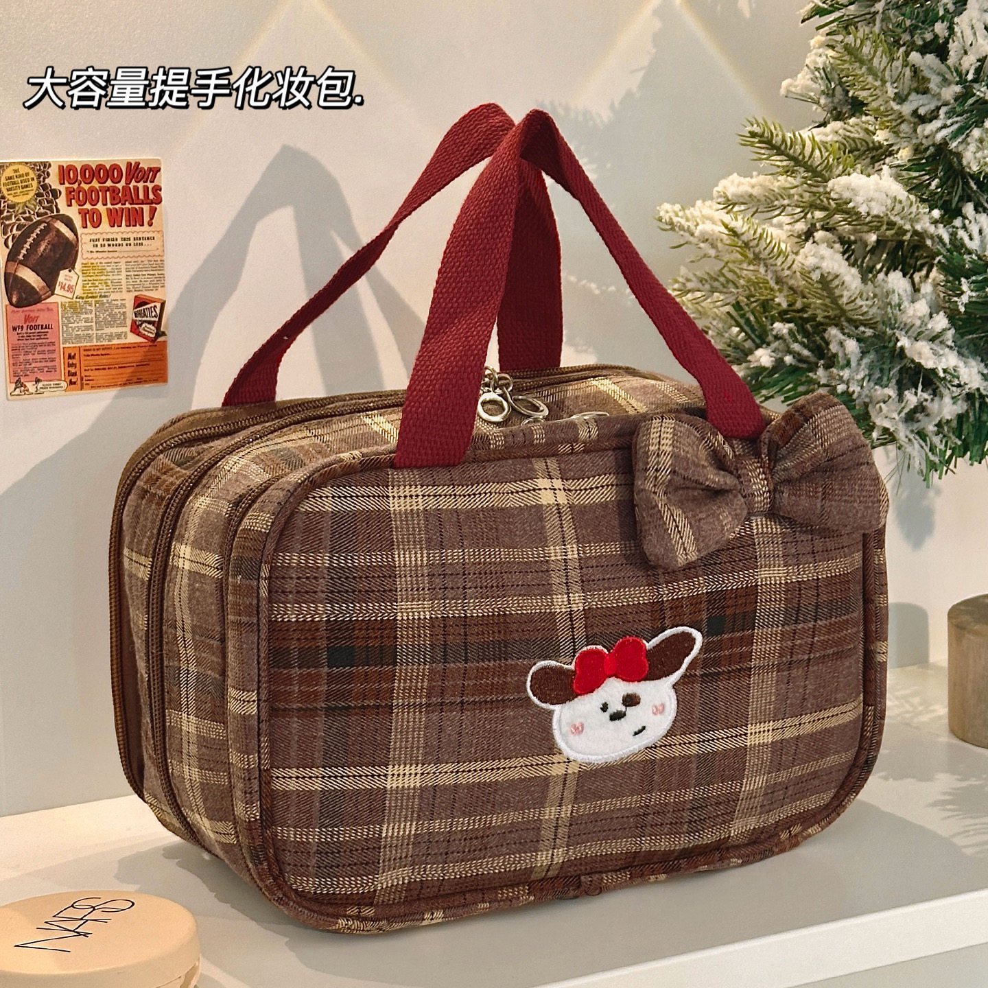 波点小狗化妆包女大容量便携手提口红护肤品收纳包旅行出差洗漱包