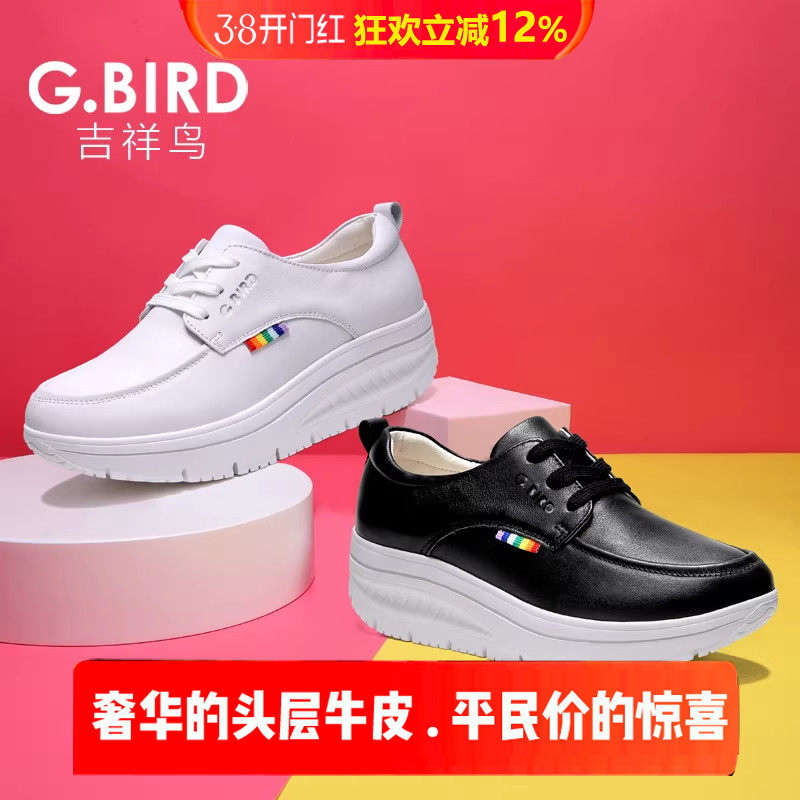 吉祥鸟超轻女鞋2026春夏真皮休闲运动摇摇鞋厚底松糕增高百搭0806