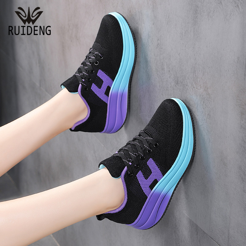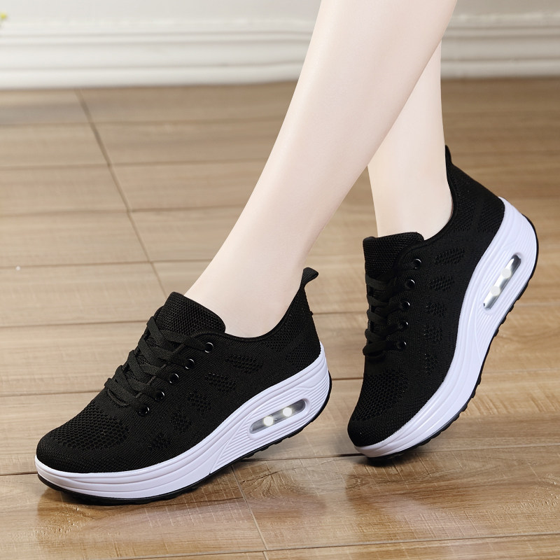 2026年春夏透气摇摇鞋飞织单鞋韩版运动鞋女鞋厚底增高女休闲鞋