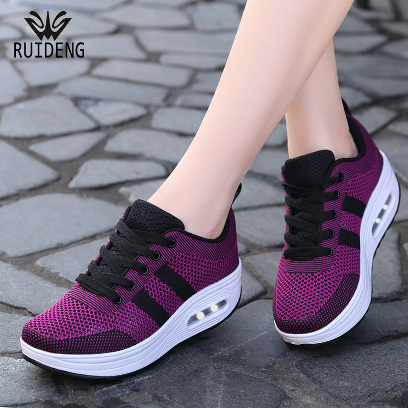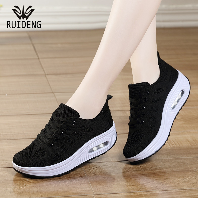 睿登摇摇鞋女网面透气运动鞋休闲旅游鞋子厚底妈妈鞋2026春季新款