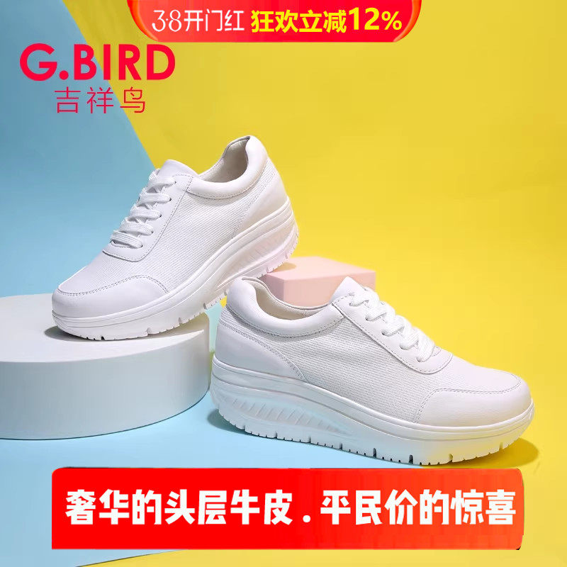 吉祥鸟超轻女鞋2026春夏真皮休闲运动百搭松糕摇摇小白鞋单鞋0710