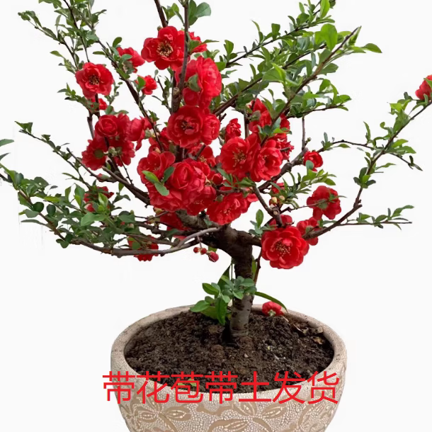 海棠盆栽带花苞长寿冠老桩树苗四季耐寒好养重瓣花卉室内阳台植物