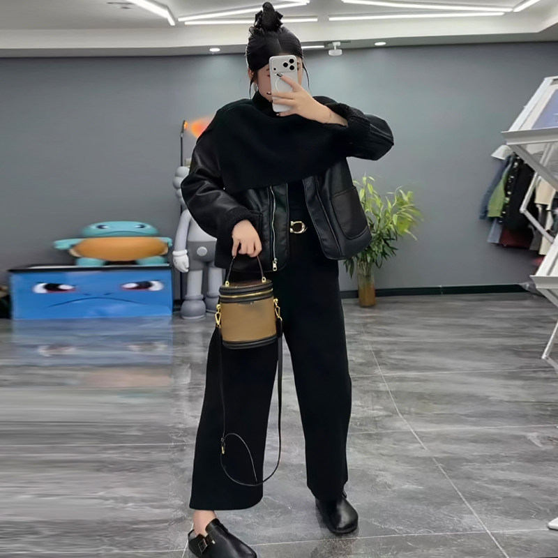 PU皮衣外套腰带毛呢裤子针织披肩胖mm2025冬季款显瘦宽松大码女装
