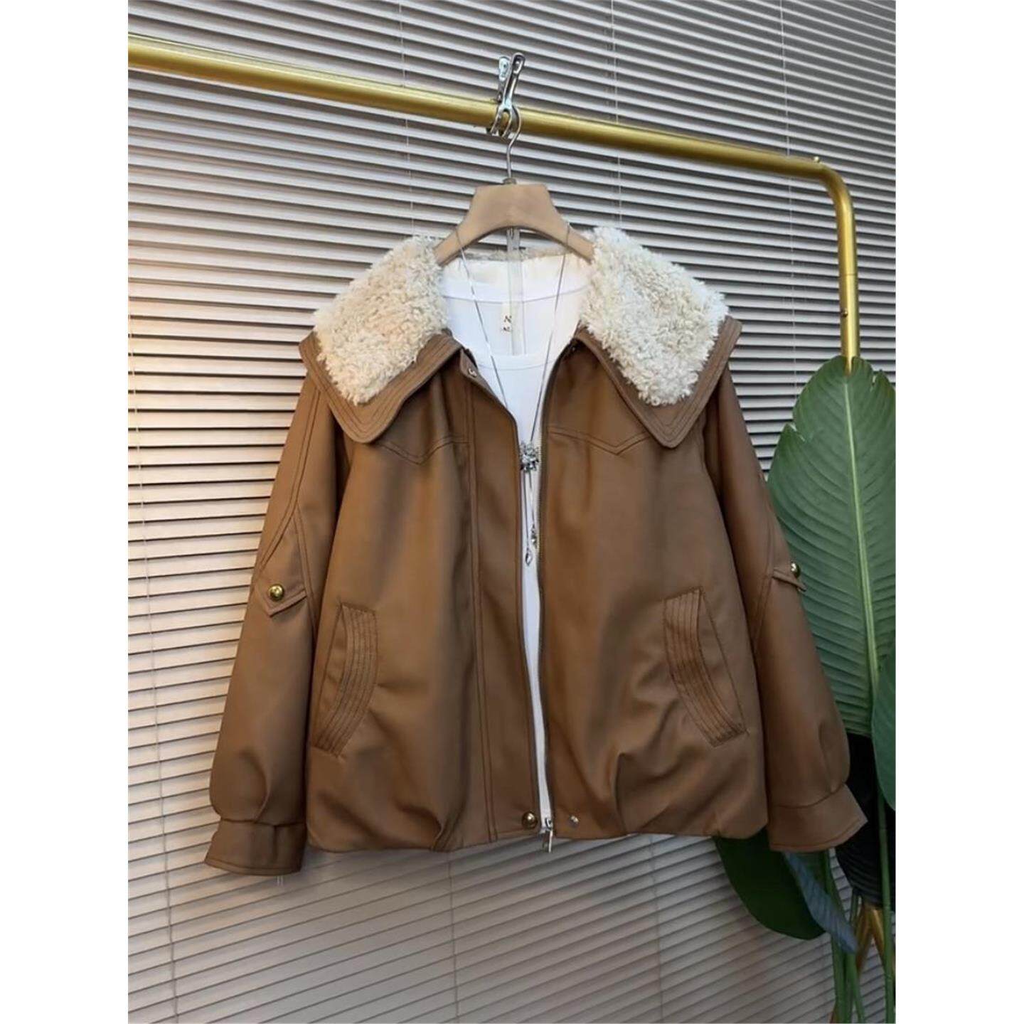 大码女装2025秋冬新款皮衣加棉外套女显瘦胖妹妹胖mm宽松减龄百搭