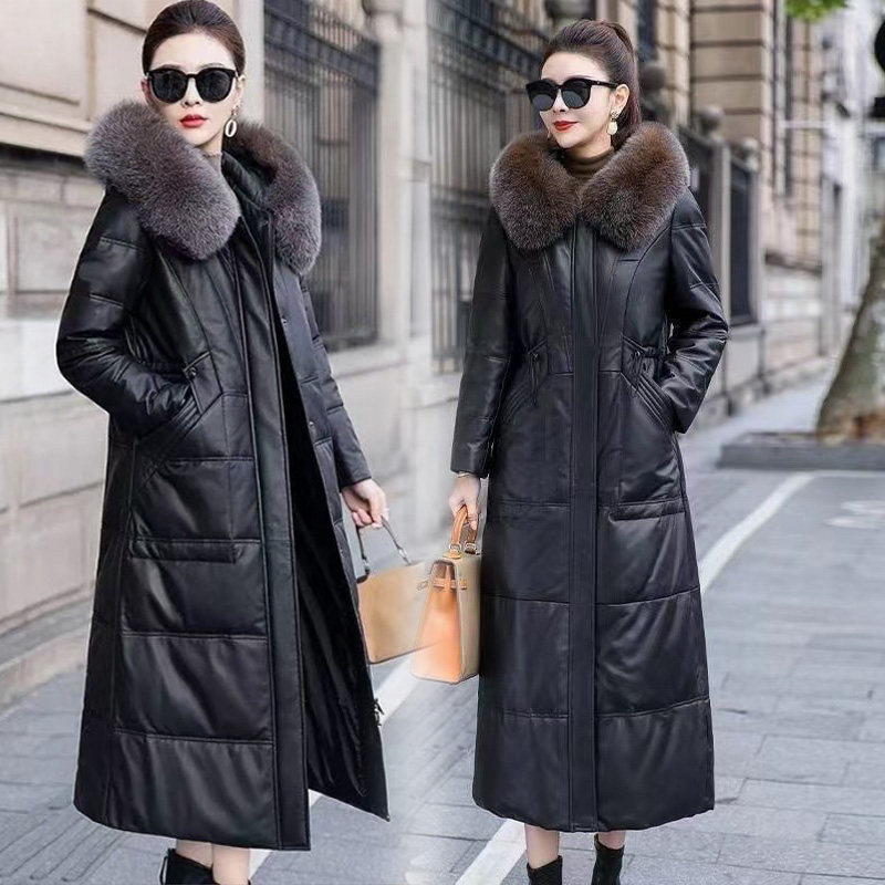 大码羽绒棉服女修身显瘦外套胖mm过膝长款高端加绒海宁皮衣冬新款