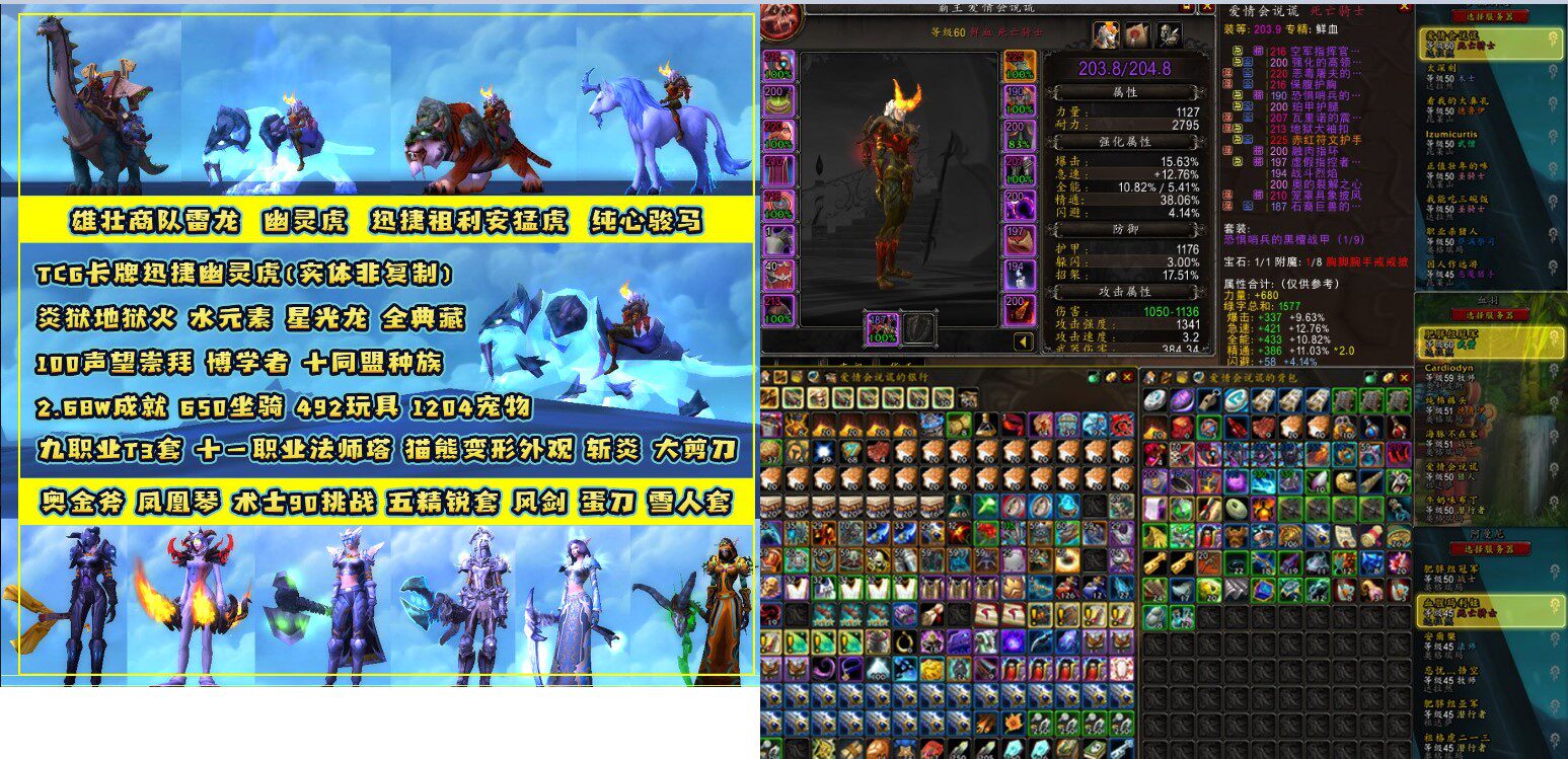魔兽世界正式服账号开荒大号毕业装274装等11职业896个坐骑幽灵虎