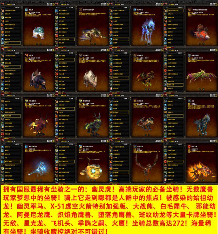 魔兽世界正式服大小幽灵虎X51卡牌火箭黑龙坐骑凤凰火鹰火乌鸦
